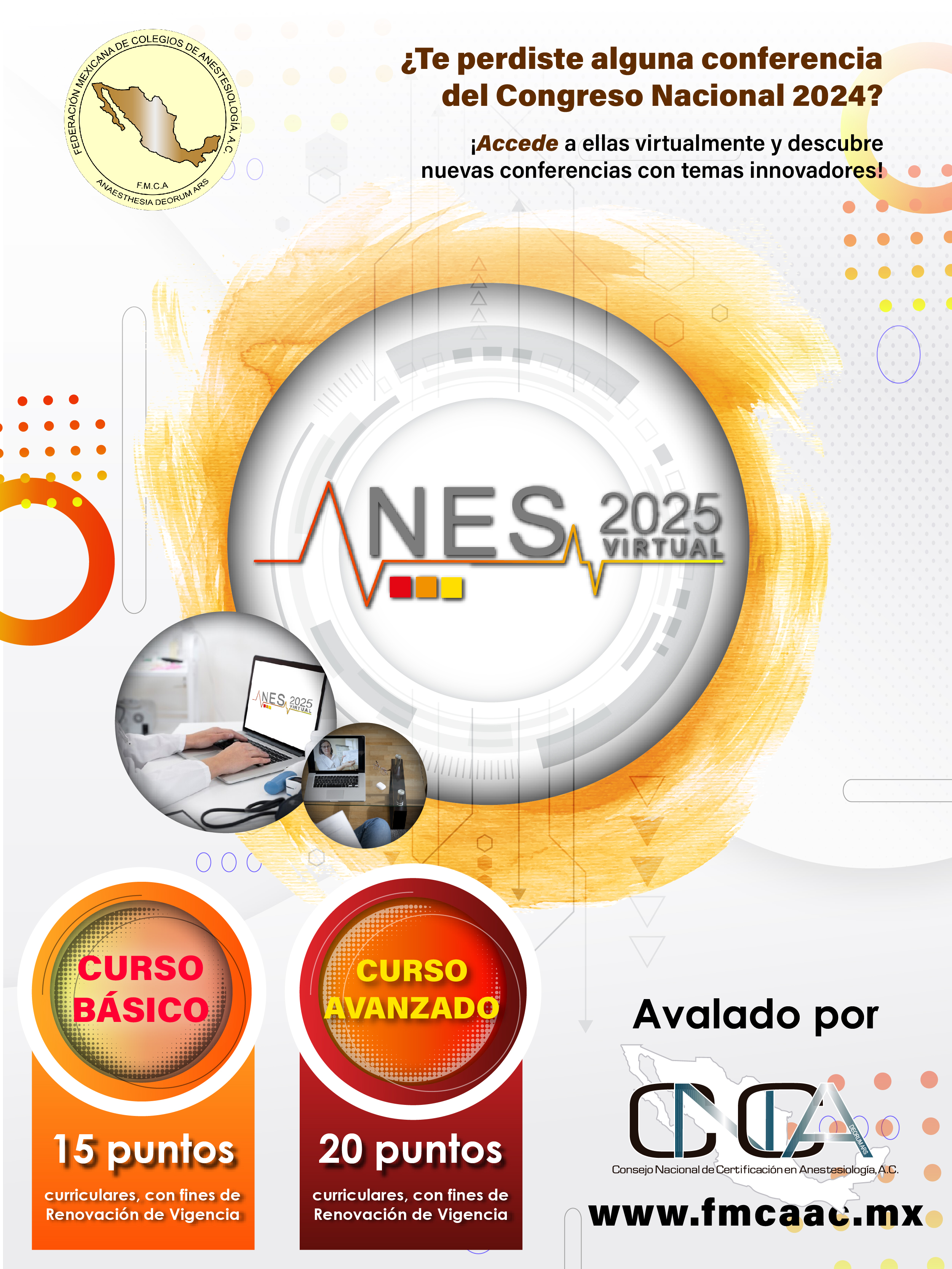 La Federación Mexicana de Colegios de Anestesiología te invita a ser parte de ANES2025 Virtual FMCA, un evento único que reunirá a profesionales de la anestesiología de todo el mundo. Este congreso, 100% virtual, está diseñado para ofrecerte acceso a las más avanzadas actualizaciones científicas, innovaciones tecnológicas y nuevos enfoques en el ámbito de la anestesia.
